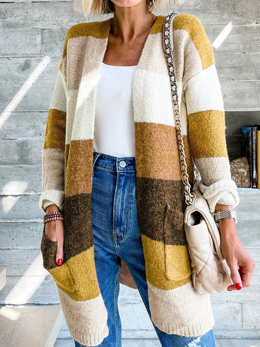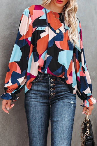 Color Block Crewneck Ruffled Puff Sleeve Blouse