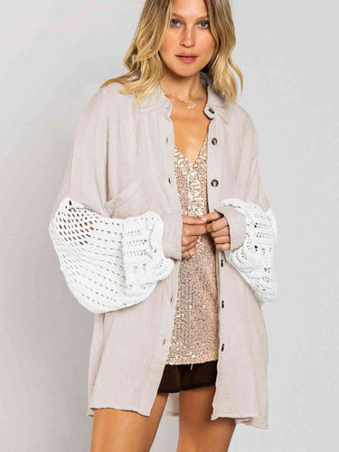 Openwork Collared Neck Button Front Shirt